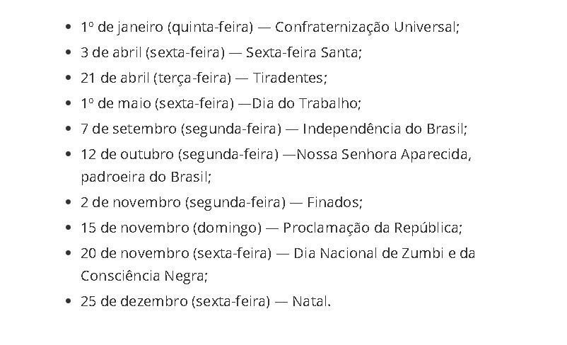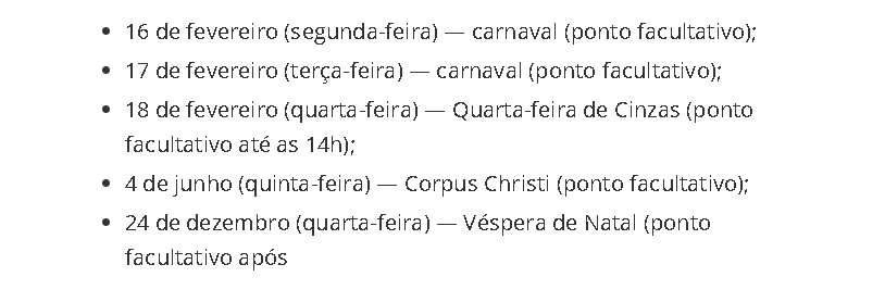 Confira todas as emendas e datas comemorativas: